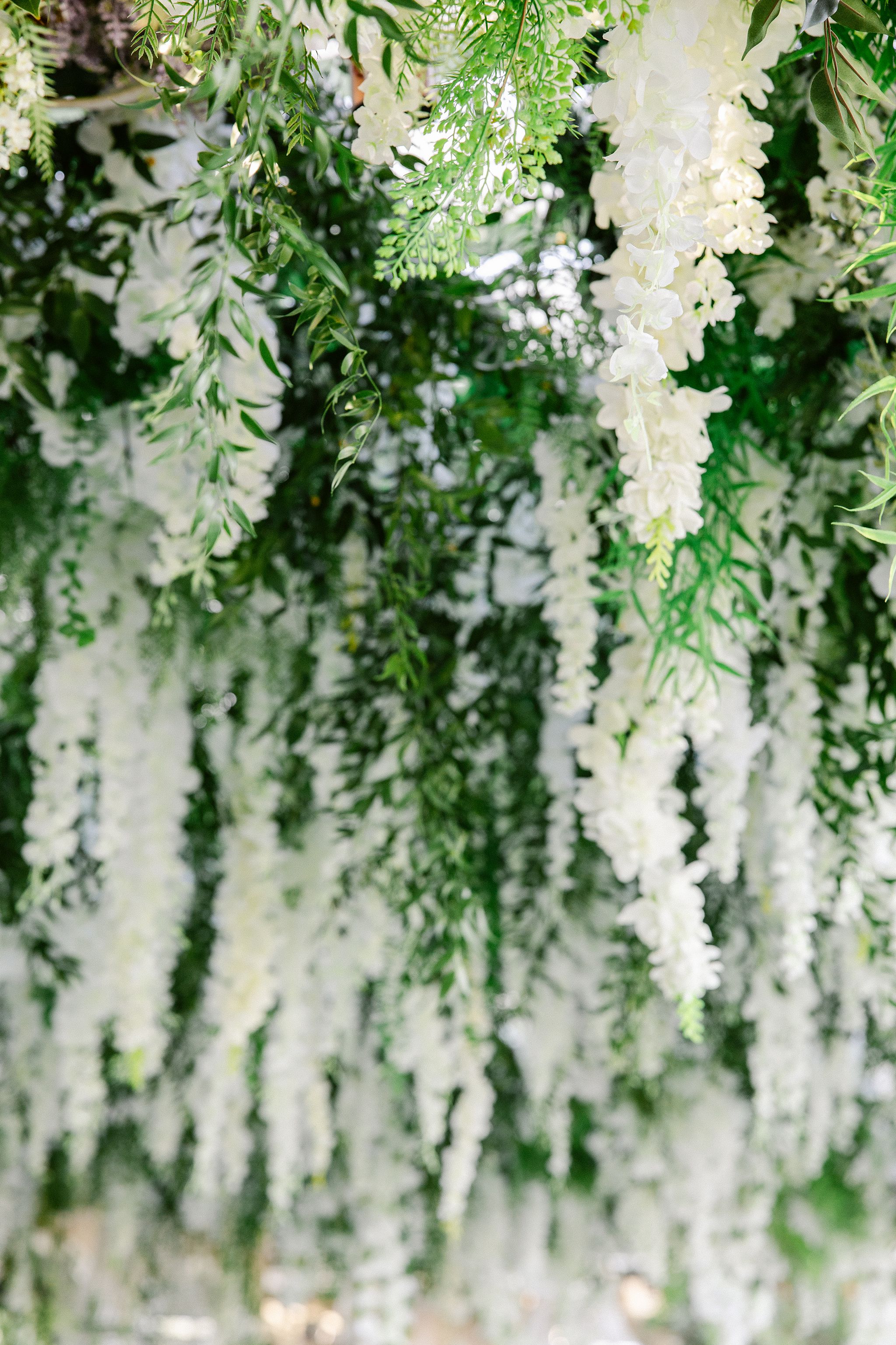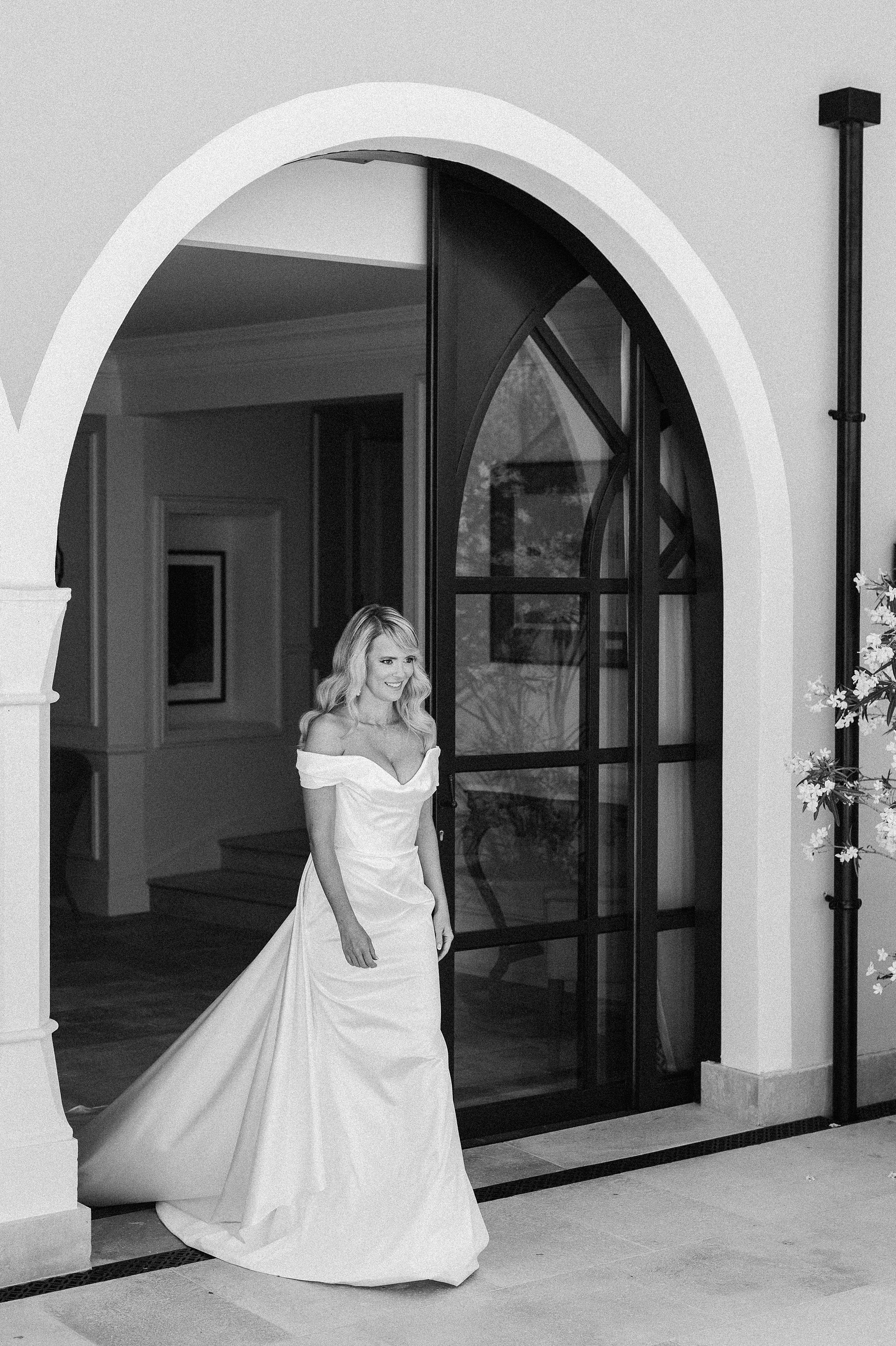 Surrounded by lush olive trees and overlooking the sea, J & C exchanged vows under a floral arch in timeless white and green tones.