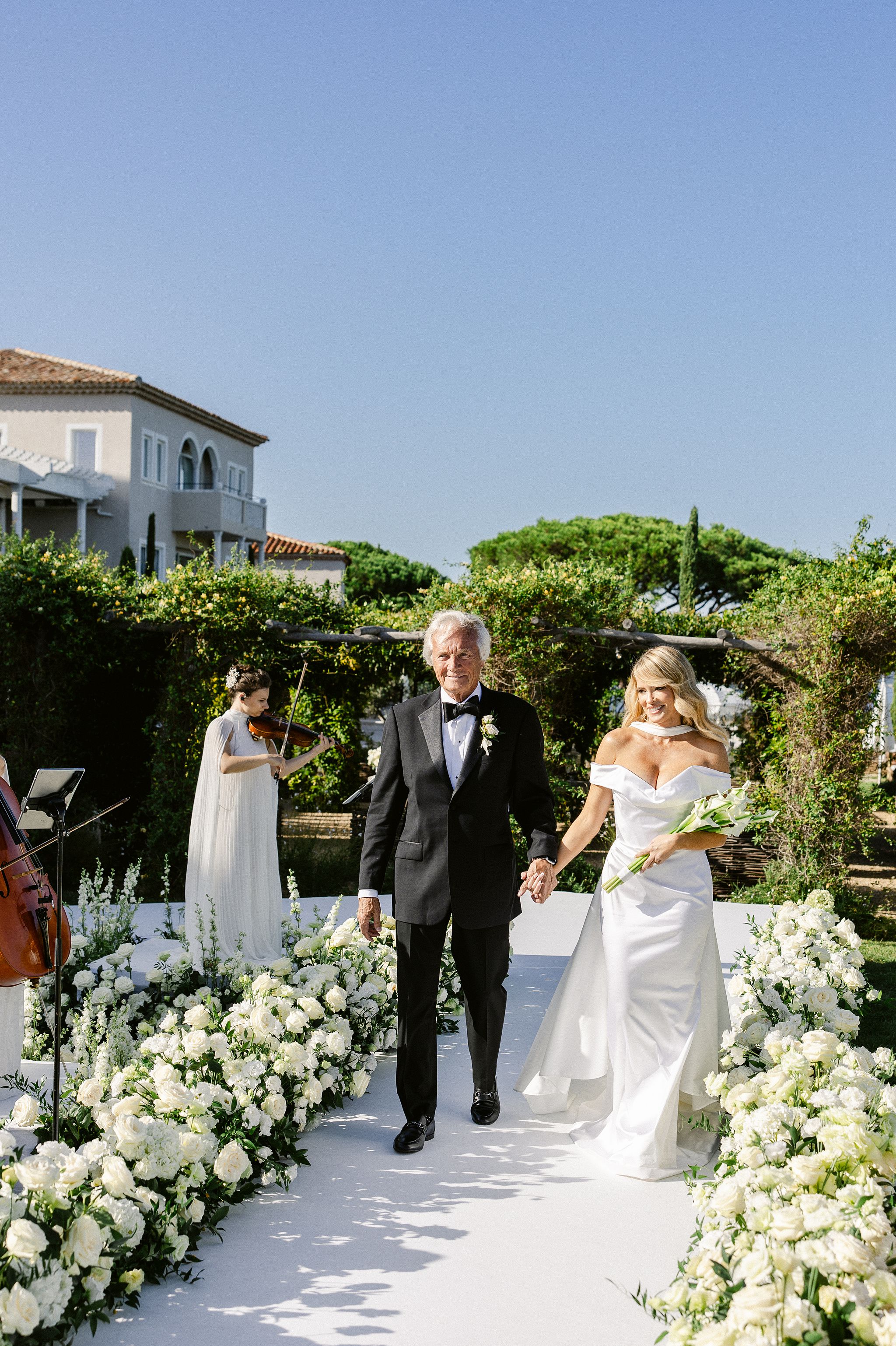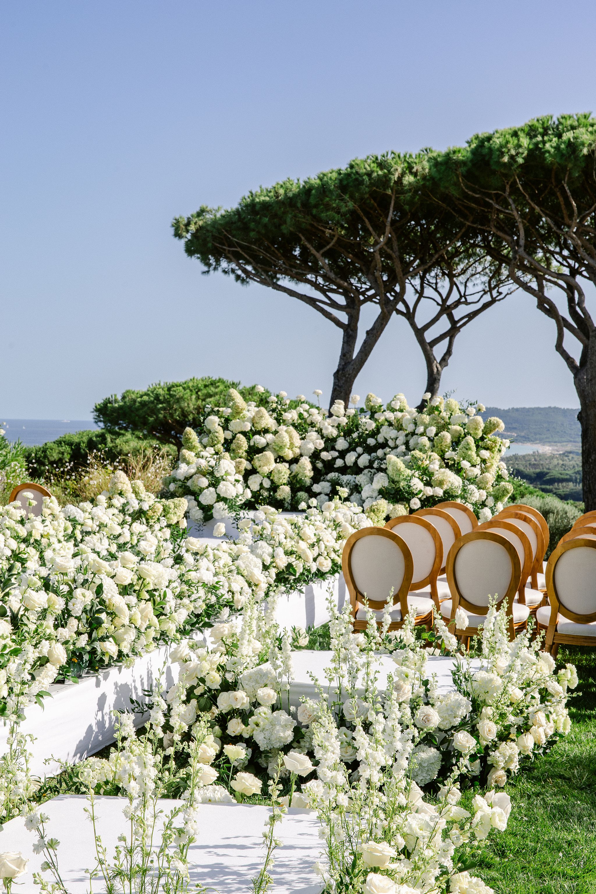 The wedding day unfolded within the breathtaking gardens of Château de la Messardière, one of Saint-Tropez’s most iconic venues.