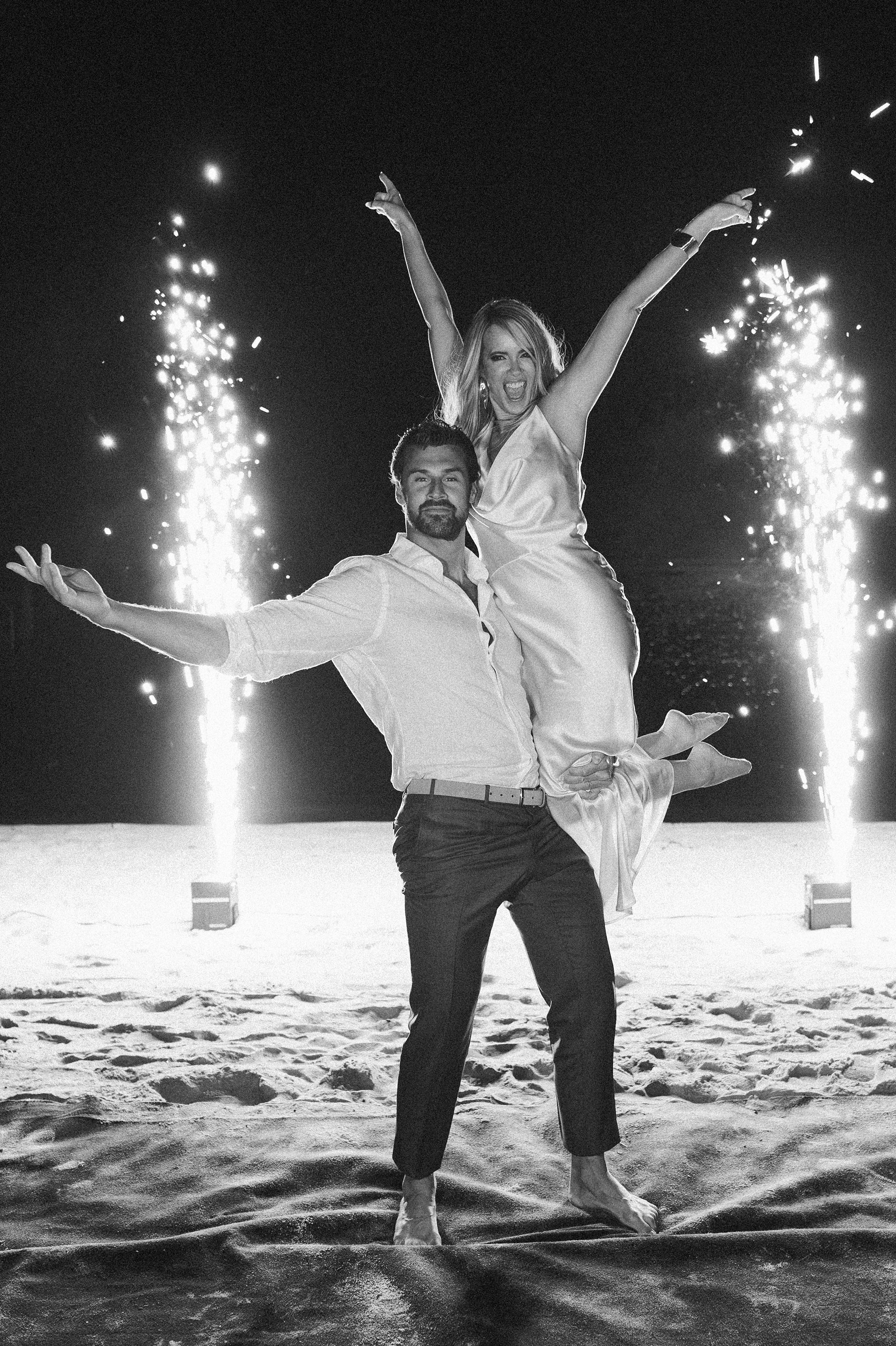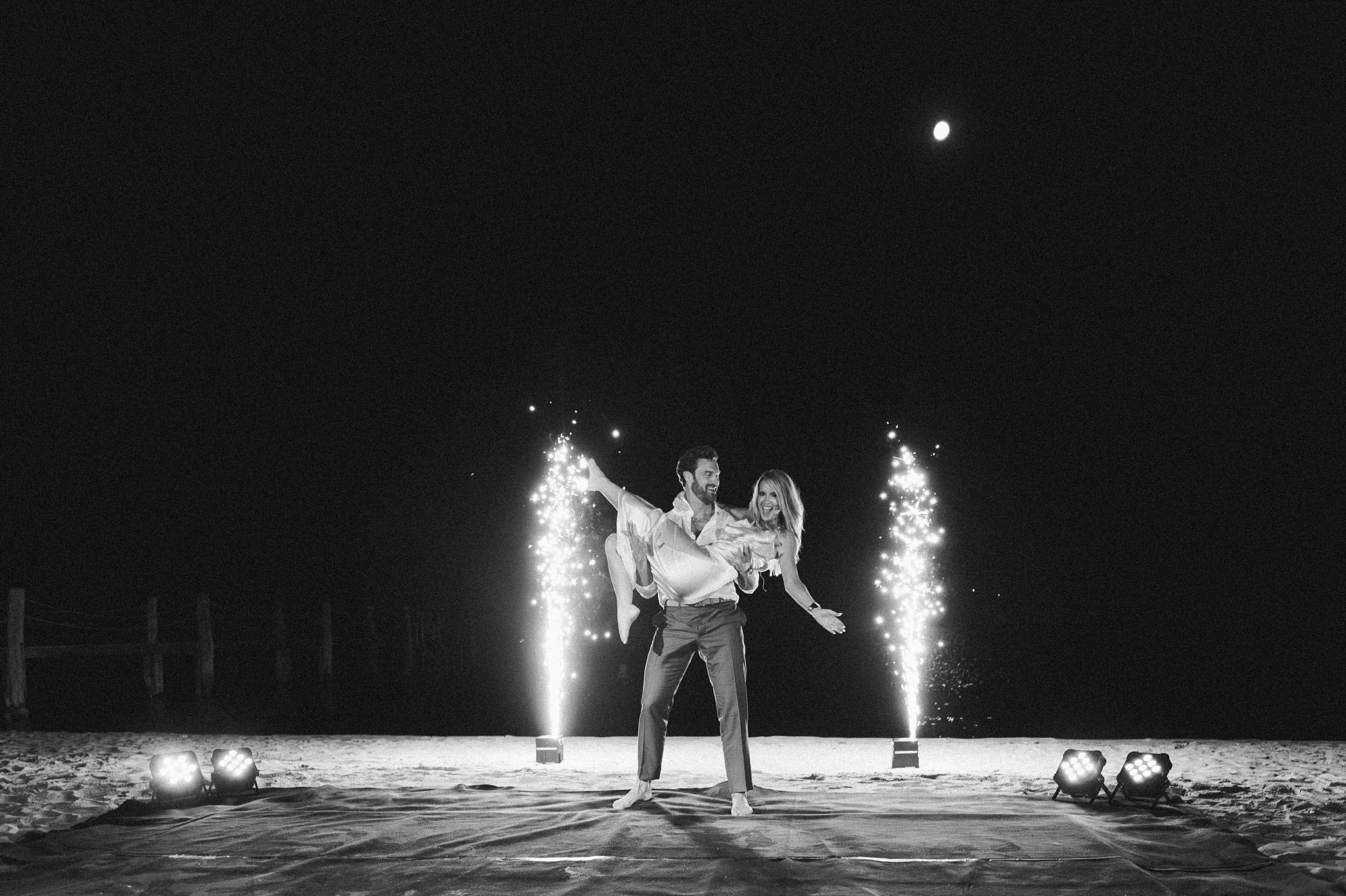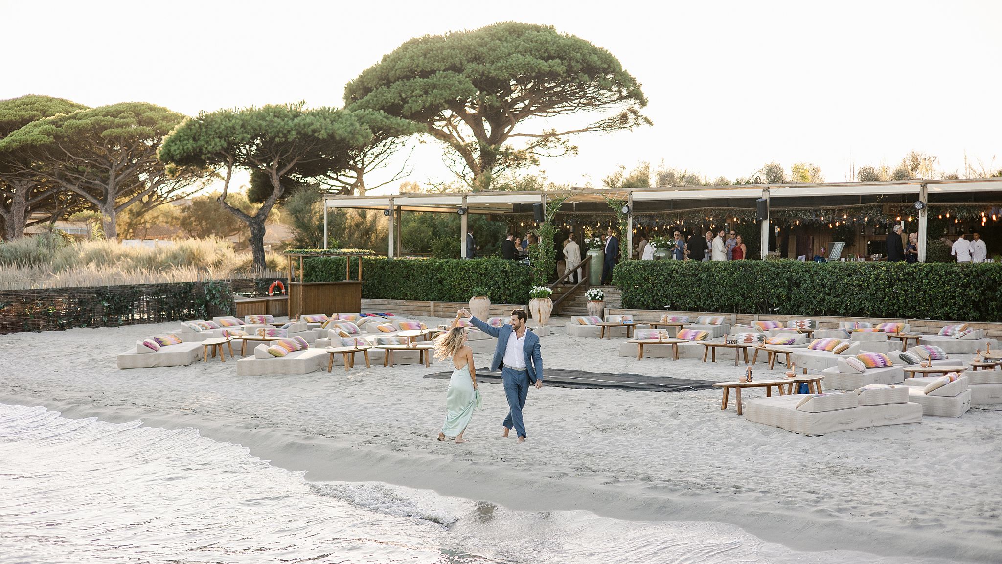 From a relaxed beach party to a stunning ceremony surrounded by white florals, every moment reflected the couple’s refined taste and joyful energy.